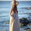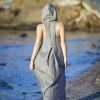 Dusty Turquoise Linen Dress Maxi Hooded Boho For