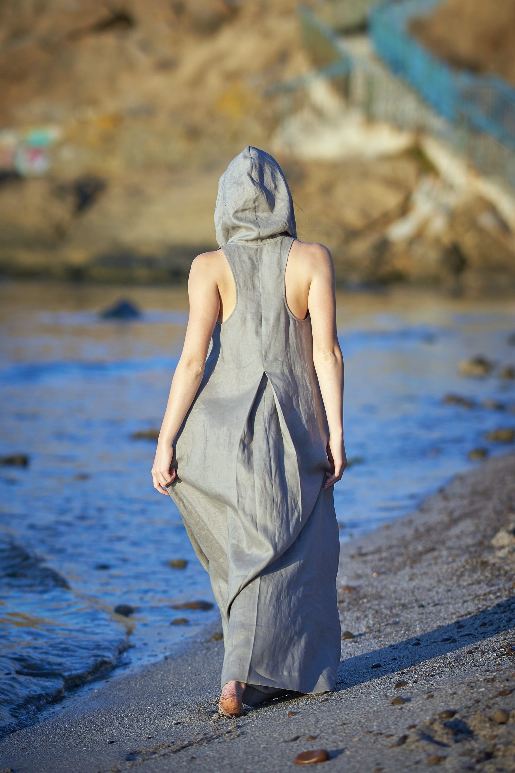 Be the first to review “Dusty Turquoise Linen Dress Maxi Hooded Boho For”